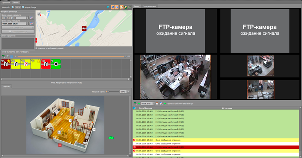 - Собственная видеоподсистема для работы с сетевыми камерами через FTP-сервер или при прямом подключении по RTCP с применением технологии поиска камер Onvif