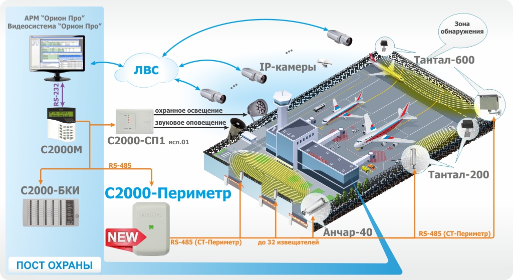 | Коммуникационный порт для работы с периметровыми извещателями | RS-485, протокол СТ-Периметр |